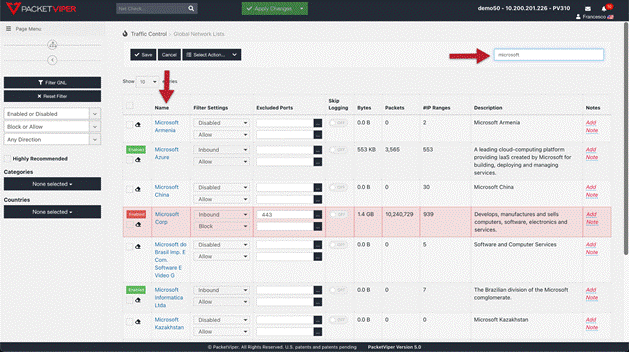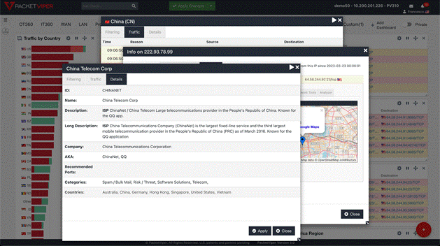 IP’s country assignment, PacketViper evaluates the *network owner*, *autonomous