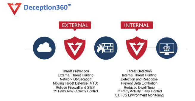 Imagine a network where every unauthorized movement is an opportunity for defense, where attackers find themselves ensnared by their own attempts to penetrate or navigate the system. This is the reality with Deception360, which functions as an inline guardian at both the internal and external levels of the network. Below is a conceptual diagram illustrating how Deception360 integrates seamlessly within the network, providing a dual shield of protection that not only detects but actively counters cybersecurity threats.