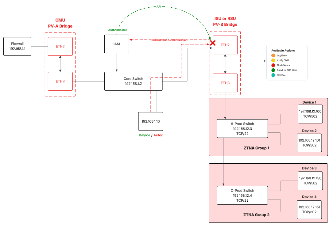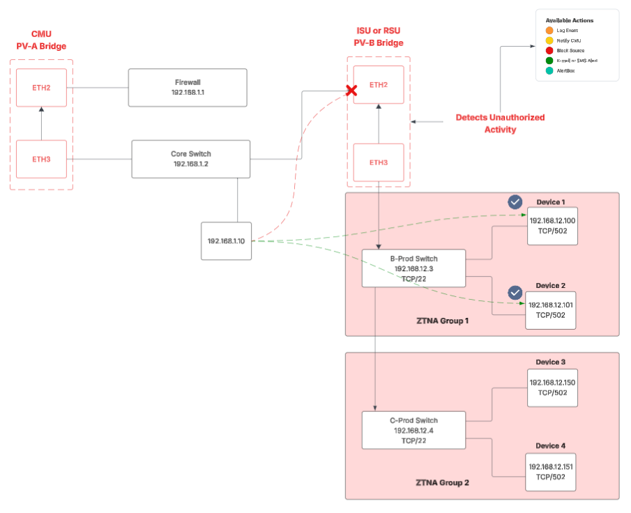 Result: Continuous Zero Trust enforcement within and between OT zones, device-to-device East/West and North/South - even when the plant is disconnected from CMU or Internet.